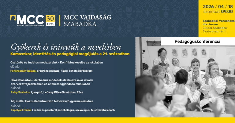 Idén 30 éves a Mathias Corvinus Collegium (MCC), Közép-Európa egyik legjelentősebb tehetséggondozó intézménye, amely jelenleg közel 8000 diák egyedülálló képzését valósítja meg, több mint 30 helyszínen a Kárpát-medencében. Az MCC diákközösségei az értékekre, a kölcsönös figyelemre és a felelősségre épülnek. Tagjai nem csupán résztvevői ennek a teljesítményalapú közegnek, hanem valódi tagságélményt kapnak: olyan közösségben tanulnak, ahol számít a jelenlétük, ahol visszavárják őket, és ahol egymás fejlődéséért is felelősséget vállalnak. Az MCC most mindhárom kiemelt programjába várja a fiatalok jelentkezését: az általános iskolás 4. osztályosok a Fiatal Tehetség Programba, a 8–11. évfolyamos diákok a Középiskolás Programba, míg az idei érettségizők és a felsőoktatásba készülők az Egyetemi Programba jelentkezhetnek.